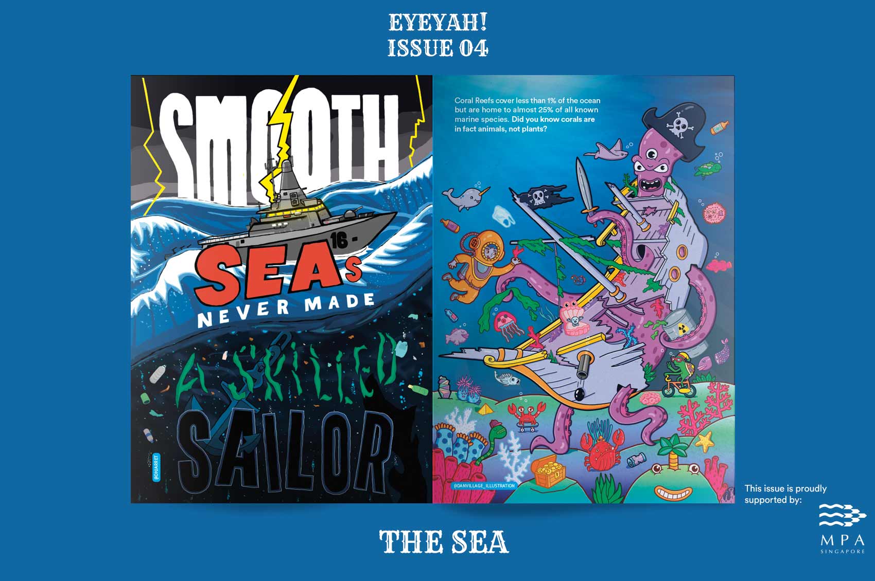 We contributed an conceptualised illustration artwork for print and digital to EYEYAH! Magazine. The sea issue, explores the magic of the sea, life on, around and below the ocean. Celebrating travellers, explorers, ships, cargos, and containers while recognising some of the threats to ocean life.